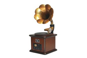 笠置シヅ子「東京ブギウギ」など、戦前戦後の名曲を内蔵した蓄音機型スピーカー「昭和レトロフォン」