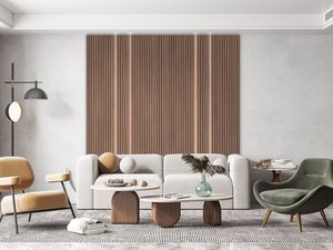 木材や釘を使用しない美しいウッドデザインで、主に中域および高域周波数を制御する吸音特性を実現したとするパネル。素材は、高圧メラミン化粧板と再生ペットボトルを主原料とするVic PET Woolを組み合わせており、サステナビリティにも配慮されている。またカットも容易で、一般的なスラットパネルと比べて、ウッドデザイン部分は薄く、PETウール素材は柔らかいため、曲面への施工にも対応できる。