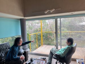 ライターの今村守之さんによる横尾さんインタビューでは、サンタナ『ロータスの伝説』をはじめ、横尾さんが手がけたアルバムアートにまつわるエピソードを語っていただくとともに、横尾さんの描く絵が「まるで死後の世界のようですが、どうしてこういう絵が描けるのでしょう?」といったお話もしました。