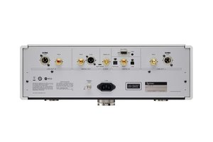 入力端子はRCA×1、光デジタル×1、USB Type-B×1を搭載。D/Aコンバーターとしても使用可能で、最大384kHz/32bitのPCMと最大22.5MHzのDSDに対応する。アナログ出力端子はXLR/ESL-A×1、RCA×1。デジタル出力端子はXLR×1、RCA×1を搭載する。また、独自の電流伝送方式「ES-LINK Analog」も装備する。