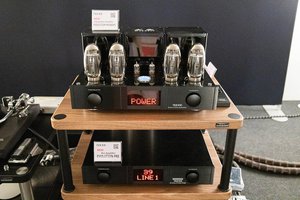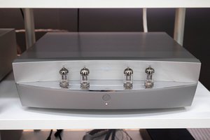 DS AUDIOは、先日先行発表された光カートリッジ専用の真空管フォノイコライザーを世界初披露(型番未定)。4本の小型真空管がフロントにあしらわれたデザインとなっているが、まだプロトタイプで、デザイン等は今後変更の可能性があるとのこと。
