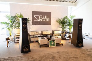 スピーカーはYG ACOUSTIC、アナログプレーヤーにはVERTEREを使用し、同社の「P-3」「M-3」などフラグシップラインを中心に展開する。「オーディオは何よりも音を聴いてもらわなければ始まりません。世界中のお客さんにSOULNOTEの音を感じてほしい。それだけです」と世界市場へのさらなる発展に静かな闘志を燃やしていた。