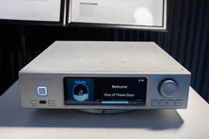 Aurenderは、ネットワーク機能内蔵一体型プリメインアンプ「AP-20」とマジコのスピーカーのみという最小コンポーネントによるシンプルで洗練されたシステムを提案。またDACを搭載しないネットワークトランスポート「A1000」もお披露目した。