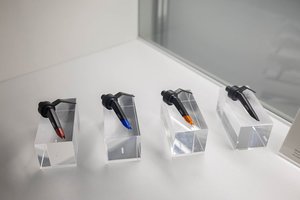 いずれもMMカートリッジのため針先交換が可能で、針先だけの単売も予定しているという。ジュエリーのような透明度の高い針先の樹脂のハウジングも特徴で、この色を再現するために素材にもこだわって開発したという。