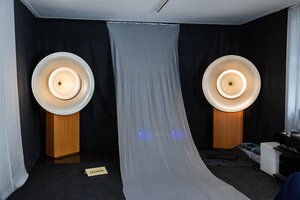 ほかにもMOTORWORLDではいくつかのオーディオブランドがブースを展開。スタジオモニターユースとしても知られるKii Audioは、アクティブ・ワイヤレススピーカー「Kii SEVEN」などを展示。シンプルな構成だが洗練されたオーディオ世界を表現しており、しばし聴き入ってしまった。LINKWITZスピーカーは平面バッフル+ウーファーをキャビネットに納める独特のデザインが特徴。