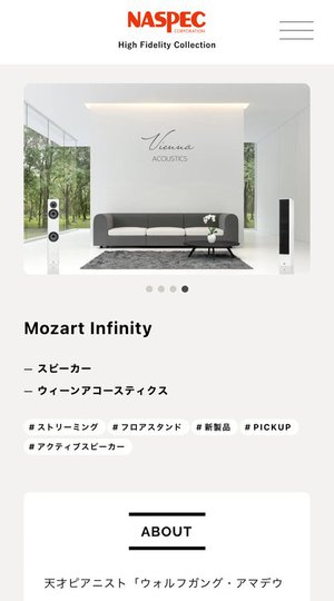 オーディオの輸入商社である(株)ナスペックは、同社のウェブサイトをリニューアル。取り扱いブランドや製品についてわかりやすく整理するとともに、スマートフォン/タブレットでの表示も見やすく刷新している。