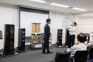 そのほかPERFECTION電源タップ3モデルの聴き比べや、仮想アース「PFT-ES1」のあり・なしのデモなどを実施。担当スタッフも「電源が一番大切」と語り、足元強化によるオーディオの音質改善の大切さを改めてアピール。スピーカーはYG ACOUSTICで、アクセサリーによる音のディテールの違いをしっかり描き出してくれる。仮想アースの使いこなしなども紹介し、来場者の多くがその音質効果に納得の表情を見せていた。