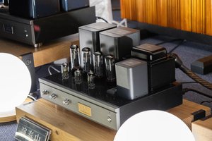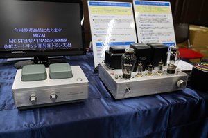 2Fはサイレントブースとなっており、レコード物販から各種アクセサリーまで幅広いアイテムを展開。ブライトーンは尖った先端から静電気を逃すスタビライザー「NAZO STAT2」、ネットワークジャパンは自社開発のトランス「MIZAI」を使った300B真空管アンプの試作機などを披露した。