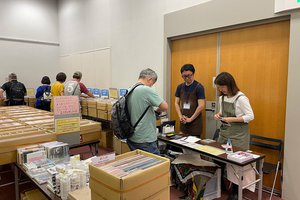 入口付近では金沢のレコードショップ、エスタシオレコーズによる中古レコードの即売会も実施。このレコード販売のスペースは会場の1/3くらいを占めていた。京都市内にはレコード店があるが、金沢からやってきたレコード店ということもあり、京都在住のレコード収集家にとっても貴重な機会であったはず。