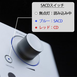 MediaTek製ME1389EEプレーヤーシステムと三洋電機製HD870ピックアップレーザーを組み合わせたトレイ型ドライブを搭載し、SACD、CDおよびハイブリッドディスクの再生に対応したディスクプレーヤー。Hi-Fiグレードなディスクメカニズムによって、SACDのスムーズな読み込みとエラーフリーな再生を実現したという。ハイブリッドディスク読み込み時にSACD層とCD層を素早く切り替えられる専用スイッチも装備し、読み込みモードはスイッチ中心部のLEDのカラーで確認できる。