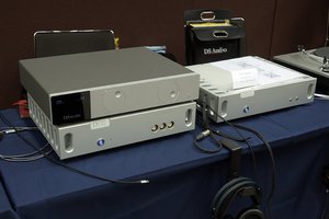 DVASは、光カートリッジ用フォノイコライザー「Model1B」とヘッドホンパワーアンプ「Model2」を組み合わせ、アナログレコードの音を高級ヘッドホンで体験できる。また、開発中の製品としてラインプリアンプ「Model3」も参考出展した。