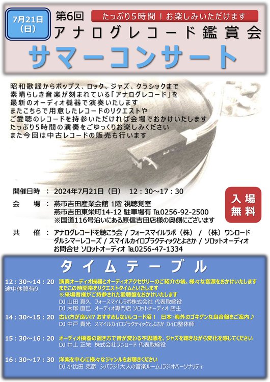 新潟県燕市でアナログレコード鑑賞会「サマーコンサート」、7月21日(日)に開催