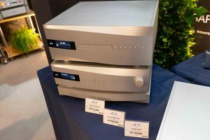 dCSからは、 “Rossiniシリーズ” のCD/SACDトランスポート「Rossini Transport」、D/Aコンバーター「Rossini APEX DAC」、マスタークロック「Rossini Clock」が並ぶ。また “Vivaldiシリーズ” のCD/SACDトランスポート「Vivaldi Transport II」やD/Aコンバーター「Vivaldi APEC DAC」、マスタークロック「Vivaldi Clock」、アップサンプラー「Vivaldi Upsampler」がラックに展示されていた。