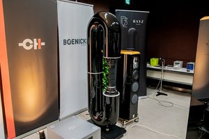 ゼファンブースでも、一見して「スピーカー?」と思わず首を傾げずにはいられない大型プロダクトBayz Audio「Counterpoint 2.0」が出展。配管を思わせる「C」型の形状もさることながら、筒状の「BRSドライバー」と、2基のミッドウーファーによって全帯域無志向という特性を獲得するなど、内部構造も工夫が凝らされている。価格はペア税込19,800,000円から。