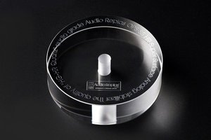 高純度石英ガラスの超高速振動処理能力と、表皮効果での倍音歪み低減効果により、レコード盤の柔らかいビニール素材特有の歪みを徹底的に排除し、S/Nをはじめ大幅な音質改善を実現可能だとしている。外形寸法はΦ70×20mm、質量は約170g。センター穴径はΦ7.4mm。