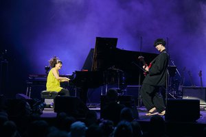 上原ひろみも生で体験するのは初めてだが、どう指が動いているのか完全に理解不能な音数の多さに圧倒される。アスリートのようにしなやかで強靭で、けだもののように野蛮で、それでいて洗練された知的な雰囲気をもまとう強烈な世界観。石若のドラム、ベースとギターも交えたカルテットでは、分厚い音の塊がこれでもかと押し寄せてきて言葉を失う。