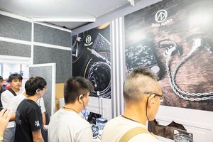 ブリスオーディオは、国内価格250万円の弩級ポータブルアンプ「冨嶽 -FUGAKU-」の最終バージョンを香港にて初披露。「Soundwave audio」という現地代理店のブースにて特別試聴会を設けていた。試聴はひとり10分と時間を区切って行われたが、長蛇の列が朝から晩まで途切れることなく続いていた。