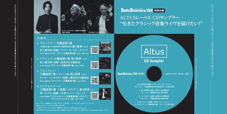 指揮者・坂入健司郎のインタビューも掲載。『オーディオアクセサリー194号』付録はALTUSレーベルのサンプラーCD