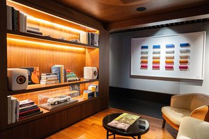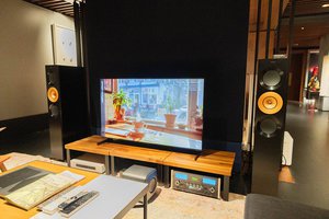 香港のギャラリーは、香港最大の繁華街である中環(セントラル)の近く、高級ブティックなどが立ち並ぶエリアにあるビルの12Fに店を構えている。奥にはフラグシップスピーカー「MUON」を従えたメイン試聴室、手前には小型のデスクトップスピーカー「LSX」シリーズや、スリムなアクティブスピーカー「LS60 Wireless」など複数のリスニングスペースを設けている。ワンフロアだが高級感のある内装で、青山のギャラリーにも近い構成となっている。