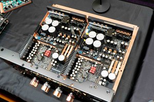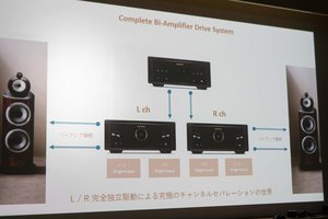 フラグシップモデルに「一筐体のハイエンドアンプ」というコンセプトを選んだことについてマランツの燻R氏は、「フラグシップの音を追求する過程で行きついた答えです。アナログアンプでは、音質とサイズは比例しており、物量を投入していくことでリニアに音質が向上していくという考えから、プリメインアンプとセパレートアンプは上位互換の関係であるが、プリメインアンプだけが持つ利点として“圧倒的な設計の自由度”がある」と解説した。