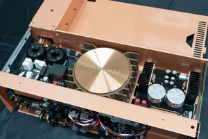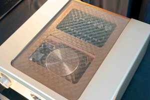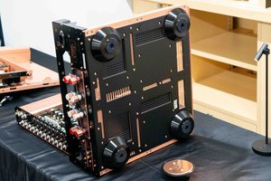 メインシャーシには1.2mm厚の銅メッキ鋼板を導入し、プリアンプ/パワーアンプ/電源回路を各専用のスペースに隔離することで、回路間の干渉を排除している。そして3.2mmと1.2mmのボトムプレートを追加した3層構造にすることで高剛性を高め、最大直径94mmのインシュレーターにはアルミニウムの無垢材と4mm厚銅板を組み合わせたハイブリッド型の脚によって、さらに剛性を向上させている。