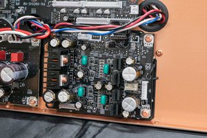 Class Dパワーアンプ回路同様に自社設計による完全オリジナルのSMPSを、パワーアンプ用のスイッチング電源回路にも搭載。基板上のレイアウト、個々のパーツの選定、放熱設計に至るまで独自開発したことで、理想的な電源回路の開発に繋がった。大電流を伝送する純銅製のバスバーや厳選カスタムパーツ、高音質パーツも多数使用している。