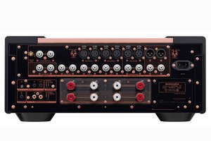 主な入出力端子は、XLR音声入力×1(バランス)、RCA音声入力×1(アンバランス)、PHONO入力×1(MM/MC)、パワーアンプ入力×1(バランス)、パワーアンプ入力×1(アンバランス)、XLR音声出力×1(バランス)、RCA音声出力×1(アンバランス)、レコーダー出力×1(アンバランス)を搭載。