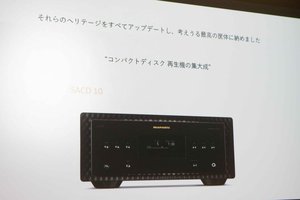 マランツの燻R氏はSACD 10について、「我社はCDプレーヤーに関する技術に自信と誇りを持っている。CD、そしてSACDのオリジネーターであり、Philips社のD/Aコンバーターの遺伝子を受け継ぎ、世界にひとつだけのオリジナルの1bit DACを所有している。さらに世界中のハイエンドブランドに供給しているSACDドライブを自社で開発しており、また伝統のアナログ回路を長年ブラッシュアップし続けている。それらのヘリテージを全てアップデートし、最高の筐体に収めた“コンパクトディスク再生機の集大成”である」と説明した。