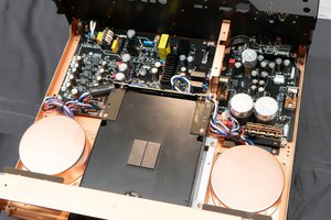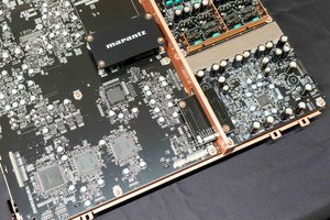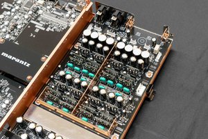 各トロイダルトランスは、銅メッキシールドケースでカバー。不要輻射を抑え、外部からのノイズの飛び込みに配慮している。また、アナログオーディオ用/デジタルオーディオ用のどちらも、サウンドマスターと音質担当エンジニアがサプライヤーと共同開発した、マランツ専用のカスタム・ブロックコンデンサー(10,000μF×2)も採用する。