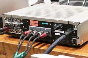 スピーカー出力には、同社オリジナルのスピーカーターミナル「SPKT-1+」を装備。コア部は真鍮の無垢材から削り出された堅牢なもので、リスニングテストの結果を踏まえ、表面処理は従来のニッケル下地/金メッキの2層ではなく、厚みのある1層のニッケルメッキを採用した。直径4.5mmまでのケーブルに対応するほか、Yラグ、バナナプラグにも対応。入出力端子には金メッキ処理を施すことで経年劣化を防止しているとのこと。