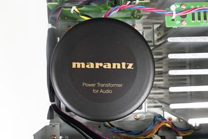 電源回路には、クリーンな電流を安定的に供給し、かつ瞬間的な大電流の要求にも耐えられるようシールドケース付きの大容量トロイダルトランスを搭載。漏洩磁束を抑えるため、垂直方向の磁束漏れを抑えるアルミ製ショートリングに、水平方向の磁束漏れを抑える珪素鋼板シールドを加えた2重シールドを施している。また、平滑回路には本機用に開発されたカスタムブロックコンデンサー(15,000μF/63V)を採用し、大容量と高速な電源供給能力を両立させているという。
