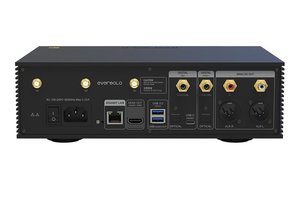 また、自社開発のEOS(Eversoloオリジナルサンプリングレートエンジン)を採用し、あらゆるオーディオオリジナルサンプリングレートをサポートすると謳う。USBポートは最大DSD512ネイティブ、PCM 768kHz/32bitの入力に対応する。