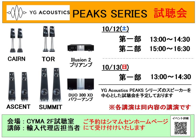 シマムセン、YGアコースティック「PEAKS」シリーズ試聴会を10/12-13に開催