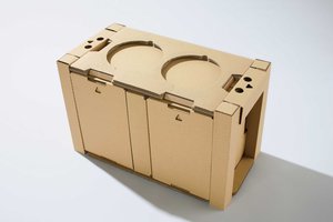 環境に配慮した取り組みとして、外観素材には旭化成社製のスエード調人工素材「Dinamica」を採用。また緩衝材の材料を発表スチロールから段ボールに変更することでプラスチック使用料を削減している。