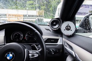 イングラフからエントリーの日隅伸逸さんはBMW「X1」を駆って青森県からはるばる参戦。ダッシュボード上に、広々と伸びやかに歌うオーケストラが大変に心地よい!日隅さんによると、「BRAXのDSPの良さをもっと引き出したい」と考えて、車内を最大限に活用できるようにユニットの取り付け位置も新たに再検討したそう。コンセプト通りに開放的に音が広がるさまは見事で、このままドライブに出かけたくなりそう。