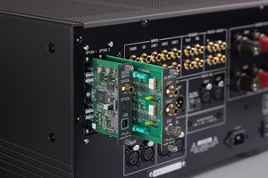 同社のデジタル入力ボード「DAC-60」、アナログ入力ボード「AD-60」の装着も可能。AD-60装着時のサブソニックフィルターやMC負荷インピーダンスの切り替えも、フロントパネルのボタンから行える。