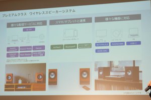 同社のスピーカーシステムは、テクニクスブランド復活後、“リファレンスクラス”や“プレミアムクラス”から始まり、ユニットや高音質技術を改良し、さまざまなシミュレーション解析技術を駆使しながら、新製品を開発しているとのこと。そして、テクニクスブランドのスピーカーの技術だけでなく、アンプ、信号処理も含めた高音質技術の蓄積が、SC-CX700の誕生に結実したと語った。