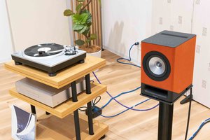 アナログレコードの再生では、女性のボーカルの歌声をクリアに表現しながらも柔らかさを含み、息遣いもリアルに聴かせてくれる。加えてアコースティックギターなどの楽器隊は、十分な響きがあるため楽器の特徴を感じられ、また広い部屋で試聴しているにも関わらず、スピーカーサイズ以上の広がり感を演出していた。
