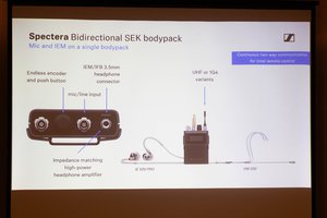 Specteraは、1Uサイズの受信機と、複数のボディパックで構成される。ボディパックにはマイクとイヤモニの双方を装着できるようになっており、受信機とWMASで接続される。これまではそれぞれのデバイスが必要であったところを、ひとつにまとめることができるのだ。こういったコンパクト化は、イヤホンとマイクの両方を展開するゼンハイザーの得意とするところだろう。