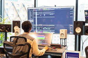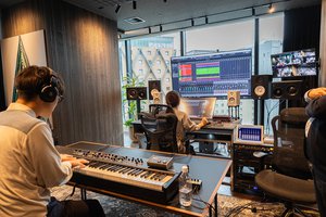 スタジオでは、音楽ユニット「コアラモード.」の録音セッションならびにミックス、マスタリングのデモンストレーションも行われた。スピーカーにはもちろんヤマハのモニタースピーカーを設置。渋谷の街を見下ろしながら、ギター、ヴォーカル、ドラム、キーボードの音がミックスされて、爽やかなポップソングが目の前で完成するさまはなかなかに感動的。