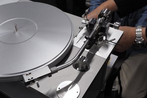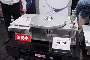 軸受け部は、水平にマグネットの反発力を利用し、回転方向をマグネットで浮かせて非接触としている。これによって「静かな音を再生できる」ようになったといい、『SERA UNA NOCHE(セラ・ウナ・ノーチェ)』のレコードを再生して実演。荒涼とした録音環境で、環境音も含めて収録されている作品だが、音が聴こえる部分と、聴こえない部分の明確な差がくっきり聴こえるようになるとアピールした。