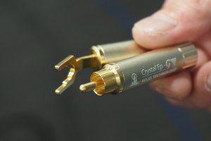 光城精工は、KOJO TECHNOLOGYブランドコンセント型「Crystal Eop-G」、スティック型「Crystal Ep-G」、ボックス型「Crystal E-G」といった、3モデルの仮想アースをデモンストレーション。仮想アースは、導体の表面積を広げることでノイズを抑制し、音質を向上させるというオーディオアクセサリー。クリーン電源にルーツを持つ同ブランドは、オーディオシステムに対して電源周りのケアを行うことで、システム全体のグレードアップを図ることをコンセプトに製品の開発を続けているという。