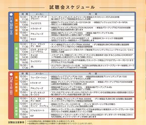 この秋話題の新製品、オーディオ銘機賞の受賞モデルが多数登場する、中部地方随一のオーディオショウとなる。1Fのメインホールと3Fのスタジオが会場で、3Fではメーカーごとに時間を区切っての試聴会が開催される。