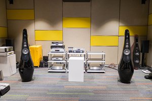 LUMINのオフィス内を案内してもらった。「昨日までオーディオショウだったから散らかっていて申し訳ないけど…」と試聴室に案内してもらう。スピーカーは7年前と同じVIVID AUDIO。基本的な開発ならびに音質チューニングはこの部屋で行っているという。
