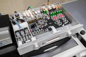 最新モデル「P1 mini」の開発初号機も置かれていた。プリアンプ機能を内蔵し、アナログ入力を持つことでオーディオセンターとしても活用できるモデルだ。エソテリックやラックスマンの機器も置かれており、ネットワークやDACの性能テストをするのに活用されているそうだ。
