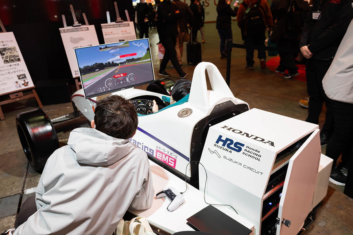 ホンダは、レーシングドライバー育成用の専用車体を活用した「グランツーリスモ」体験コーナーを展開する。
