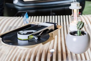 <オートサロン>アウトドアで楽しむレコード再生!リチウム電池を再利用したポータブル電源も