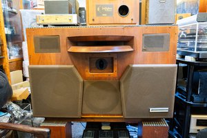 日本からの訪問者を、リンさんはにこやかに出迎えて、奥の試聴室に誘ってくれた。なんとか機材の山をかき分けて奥の試聴室に入ると、そこにはJBLのダブルウーファー「EVEREST DD67000」が圧倒的な存在感を放っている。リンさんによると、「私がオーディオを始めたおよそ50年前は、JBL、タンノイ、そしてウェストレイクが非常に人気の高いスピーカーでした。私はその中でもJBLの音に惚れ込んで、ずっとJBLと共にオーディオ人生を歩んできました」と誇らしげに語る。
