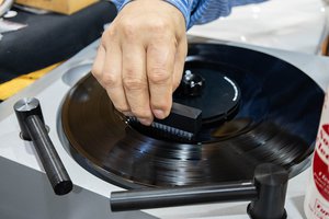 実際の模様は動画を見てもらうとして、ポイントは「ブラシを優しく盤面に当てて素早く擦る」動作を繰り返すことだそう。クリーニング液を垂らして一周ブラシで擦る。一旦バキュームして、今度は精製水で水洗い。ふたたびバキュームで乾燥させて、さらにもう一回水洗いするのがリンさんのこだわりだ。