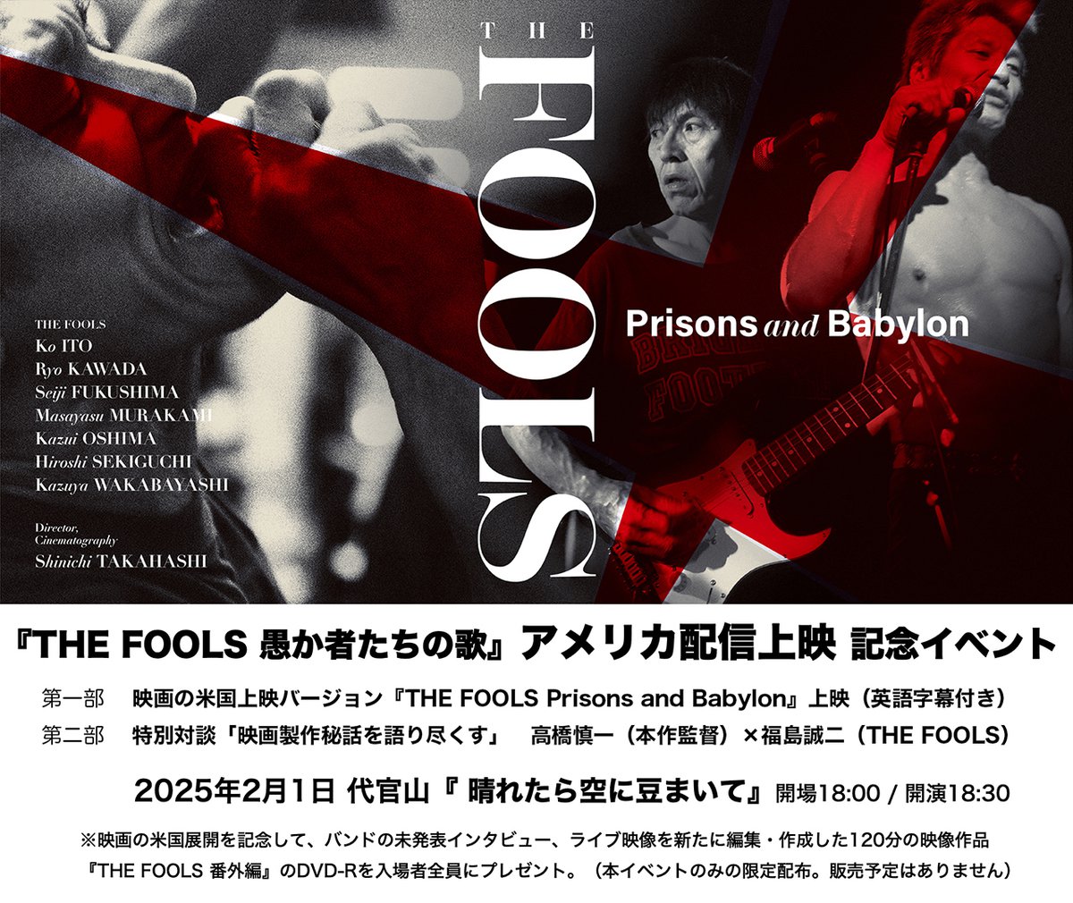 それを記念した「晴れ豆」でのイベントは、二部構成となっており、第一部は映画の米国上映版・英語字幕付き上映、第二部は本作監督の高橋慎一とTHE FOOLS最後のリーダー・福島誠二との対談トークが行われる。